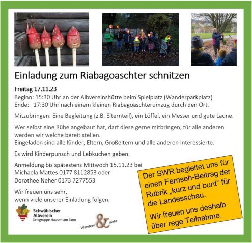 2. Riabagoaschter schnitzen Fr., 17.11.2023, Uhrzeit: 15:30 - 17:30 iCalendar Mit dem Laden der Karte akzeptieren Sie die Datenschutzerklärung von Google.Mehr erfahren Karte laden Google Maps immer entsperren zur Übersicht